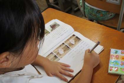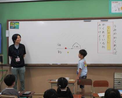 国語科「うみのかくれんぼ」の学習をしています。「なにが、どこにかくれているのか」本文をしっかりと読んで、見つけることができました。