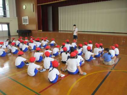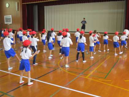 スポーツフェスティバルに向けて、体育館で3年生みんなで団体演技の練習を行いました。