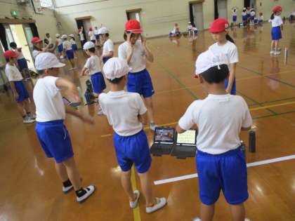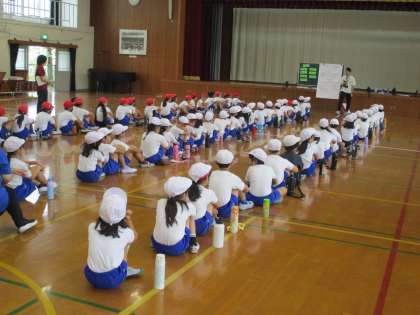 スポーツフェスティバルに向けて、4年生とエイサーの合同練習を行いました。