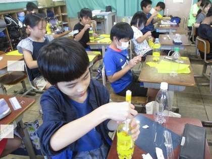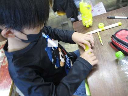 スポーツフェスティバルの演技で使用する「ペットボトルパーランク」を作りました。クラスごとに色をかえています。当日を楽しみにしていてください。