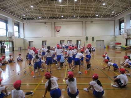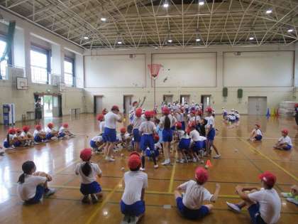 今日は、3・4年生の玉入れの練習をしました。体育館で、新聞紙をまるめたボールを使って練習をしてみました。対決は、とても盛り上がりました。明日は運動場で思い切って紅白球を投げられるので、楽しみですね♪