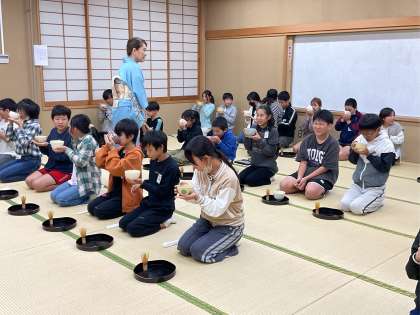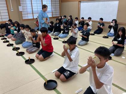 子どもたちは今日の茶道体験を通して、日本の伝統文化にふれる貴重な時間を過ごしました。講師の先生をお招きし、茶道の歴史や作法について学んだ後、実際にお茶を点てる体験をしました。体験後には、「お茶を飲むだけでなく、相手を思いやる所作すべてに意味があると知ることができてよかった」「抹茶は少し苦くて、大人の味がした」という声も聞かれ、子どもたちにとって心に残る学びの時間となったようです。
