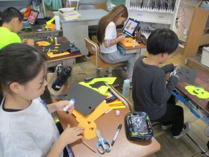国語科「クラスみんなで決めるには」の学習では、学級会で決めた「ハロウィンパーティー」の実施に向けて、準備を進めています。ハロウィンカボチャの衣装を作ったり、役割ごとの打ち合わせをしたりしました。