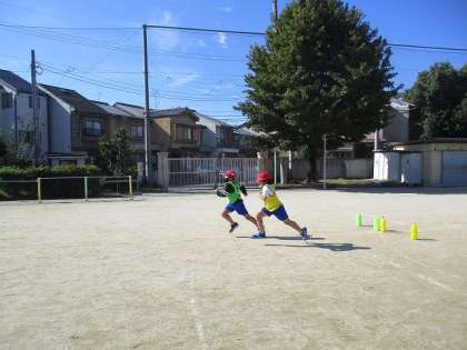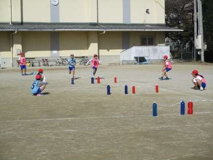 体育科「小型ハードル走」の学習では、ペットボトルのご協力をいただき、ありがとうございました。ねらい2(4台の小型ハードルを一定のリズムで走り越す工夫をして、同じくらいの走力の相手と競争して楽しむ)の学習に入り、子どもたちは本格的な競争を楽しんでいます。スタートの合図や、計測の方法にも慣れてきました。スピードが出てきて、インターバルの調整にも考えが向いてきたところです。