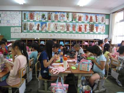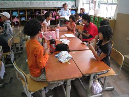 オリエンテーリング終了後,学校に戻ってなかよしグループで昼食をとりました。1年生をはじめ,子どもたちはオリエンテーリングで力を出し切ったのか,静かに昼ごはんを食べていました。