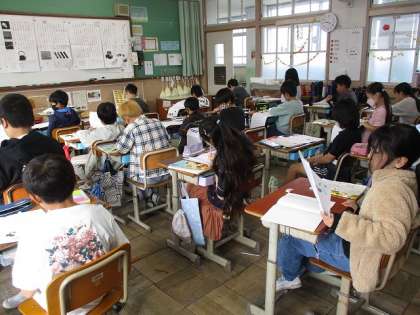国語「未来につなぐ工芸品」の学習が始まりました。段落に分け、文章を「初め」「中」「終わり」にまとめて、内容をたしかめました。全文シートを見て、中心となる語を見つけようと一生懸命でした。