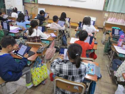 国語科の学習では、「じどう車ずかんをつくろう」の学習を行いました。前の単元「じどう車くらべ」で学習した「しごと」と「つくり」を意識して、自分が好きな車についてまとめました。文章だけでなく、絵にもこだわりながら素敵な作品を作りあげることができました。学習の最後には、書いた作品をみんなで読み合いました。