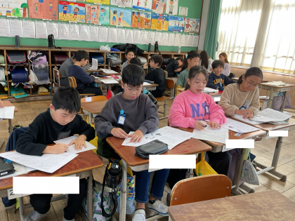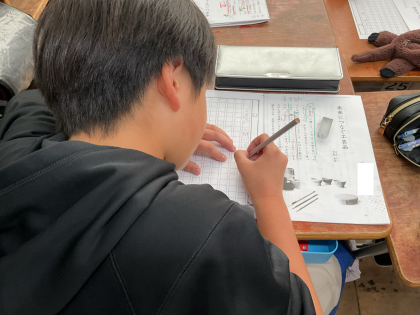 国語「未来につなぐ工芸品」の学習をしています。中心となる語や文を使って、200字程度に要約することを頑張りました。