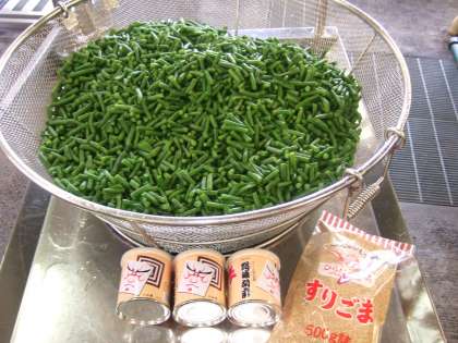 「三度豆のごま煮」に、練りごまを使ってます。 炒ったごまを、クリームのようになるまで細かくすりつぶしたものが、練りごまです。 練りごまを使うと、ごまの香りや、なめらかな口当たりが楽しめます。