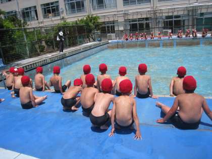 初めてのプール学習におおはしゃぎの1年生でした。
