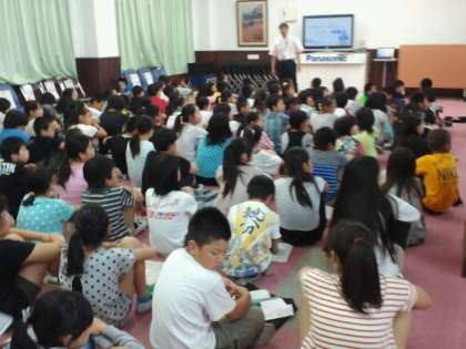 全体説明会の様子です。今日は大宅小学校のお友達と一緒です。