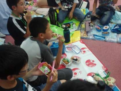 楽しいランチタイムです。ブースごとに食べています。