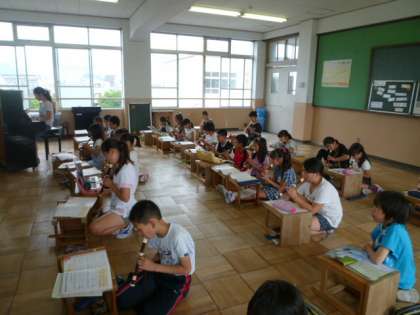 5年生は、音楽で「こきょうの人々」を学習しています。