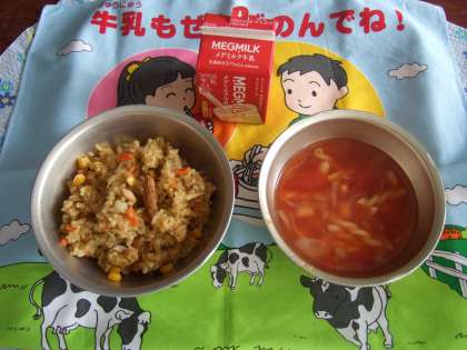 カレーピラフ 牛乳 トマトスープ