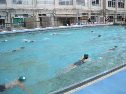 水の冷たさに思わず,悲鳴があがっていましたが,お互いに泳法を教え合いながら,楽しく活動することができました。