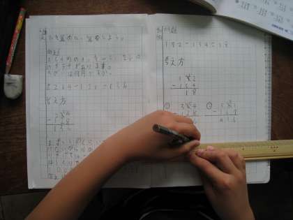 算数の学習で,ノートの書き方を学習しています。