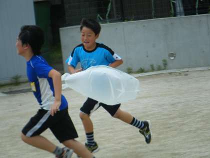 理科『とじこめた空気と水』の学習の様子です。空気を閉じ込めた袋を押したり,腰かけたりして,気づいたことや感じたことを話し合いました。
