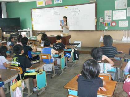 『あじさい読書週間』の取組として,ありすのいえの方に読み聞かせをして頂きました。3冊の本を読んでいただき,読書に更に親しみをもてたようです。