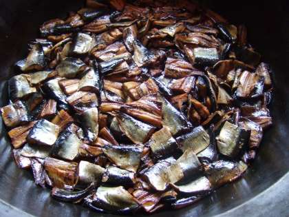 「にしんなす」のにしんは、干したものを使います。 あぶらの多いにしんと、あぶらに良く合うなすを炊き合わせました。 このように、味のとり合わせが良いものどうしを「であいもん」といいます。