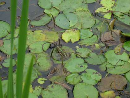 葉っぱの上でくつろぐカエルさん…