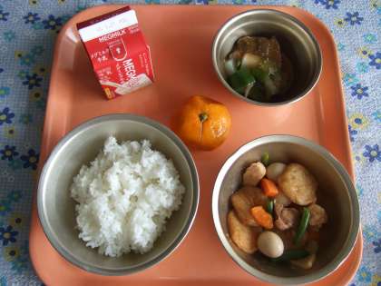 ごはん 牛乳 平天の煮つけ 京野菜のごまみそかけ みかん
