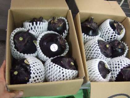 賀茂なすと万願寺とうがらしは、京都で昔から作られてきた京野菜です。 賀茂なすは、ボールのように丸くあざやかな紫色で、皮がやわらかく甘みもあります。 万願寺とうがらしは、とうがらしの大様と言われるくらい大きなとうがらしです。 赤味噌・砂糖・みりん・料理酒・いりごまで作ったタレをかけて食べます。