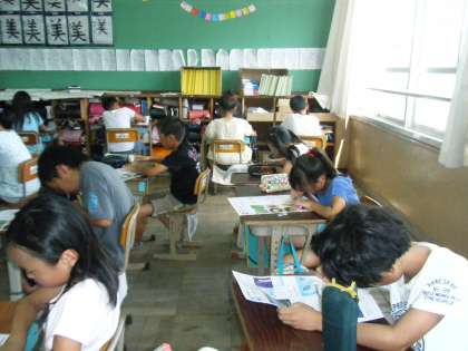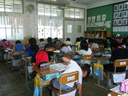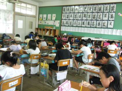 今,学習では夏休みまでに学習した所のまとめを行っています。写真は,理科の夏休み前のまとめテストをしている様子です。