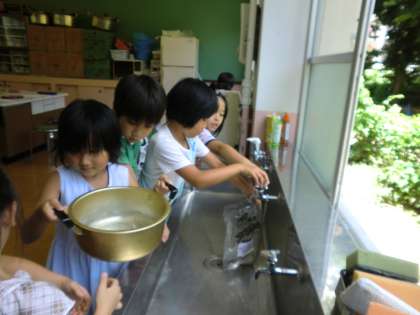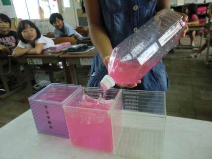 算数のかさの勉強は、子どもたちにも身近な教材でした。