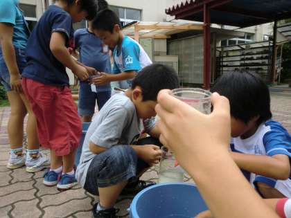 中庭で実験をしたときは、使った水を野菜にあげました。