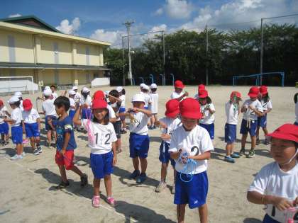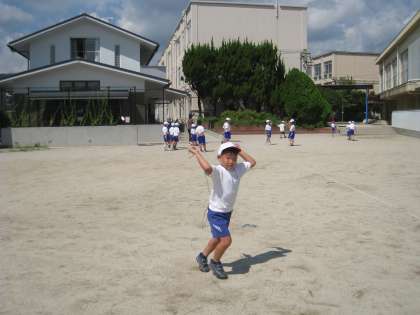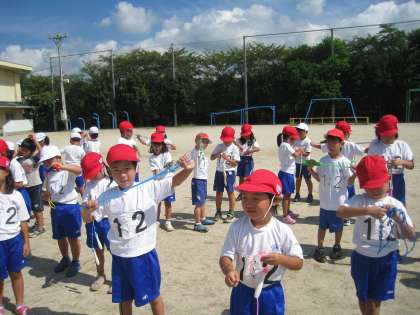 今日は,まず「半分に折って,円を作って入れる」と合言葉のように言いながら,短縄の結び方を学びました。その後,前とび5回に挑戦しました。