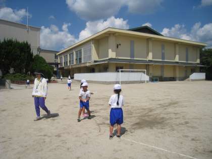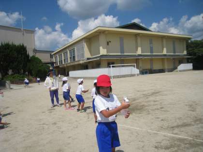 マヨネーズなどの空き容器を使って水遊びをしました。