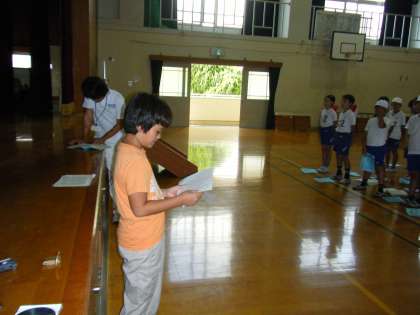 みさきの家にむけての活動の様子です。子どもたちが主体的に動き,集いや式を進行していく練習をしています。