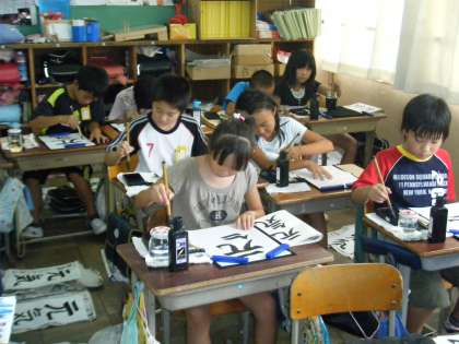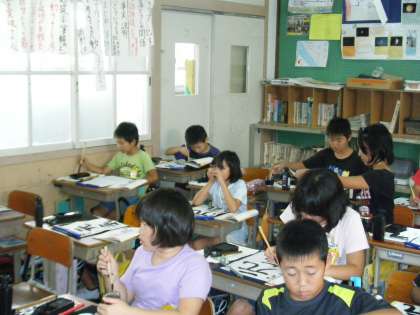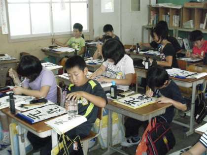 『書写』の時間の様子です。普段は元気でにぎやかな学年です。しかし,『書写』の時間になるとうってかわって教室は静寂につつまれ,緊張感が教室中に溢れています。