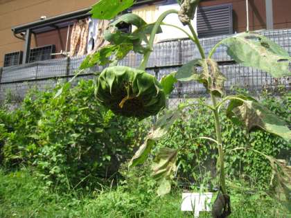 ヒマワリは首をうなだれ…マリーゴールドは雑草の中に埋もれてしまい…
