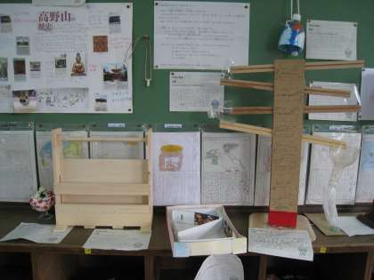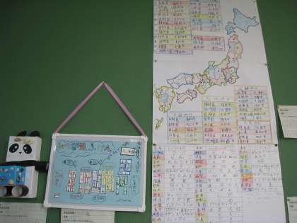 干物工場に行った体験レポートを書いたり,木や廃材を使っておもちゃを作ったり,大きな日本地図を作ったり,とてもおもしろい作品が並びました。