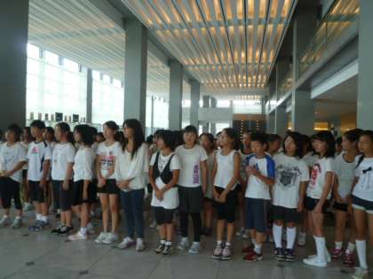 無事、歌い終わり、ステージから退場した直後の子どもたちの様子です。