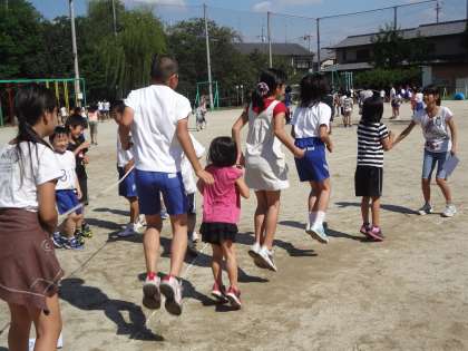 なかよしグループで集まり,各グループごとに遊びます。特に今日は,運動会に向けて長縄をがんばるグループが多かったです。