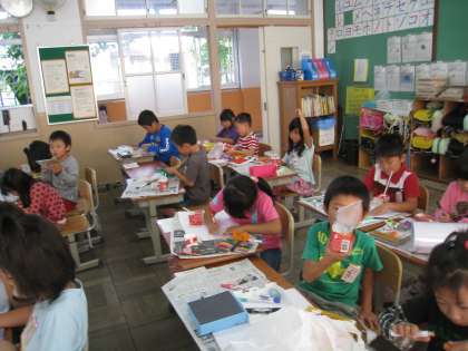 一人ひとりが思い思いに絵を書いたり,画用紙を貼り付けたりしました。