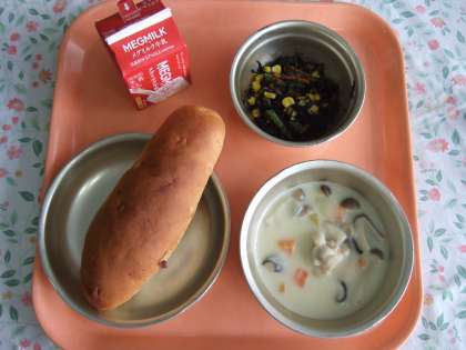 チーズコッペパン 牛乳 きのこのクリームシチュー ひじきのソティ