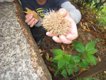 子どもたちが見つけたものといえば,アキアカネ・さなぎ・けら・トノサマバッタなどの虫や,むらさきしきぶ・すすき・いがぐり・どんぐり・もみじなどの植物でした。