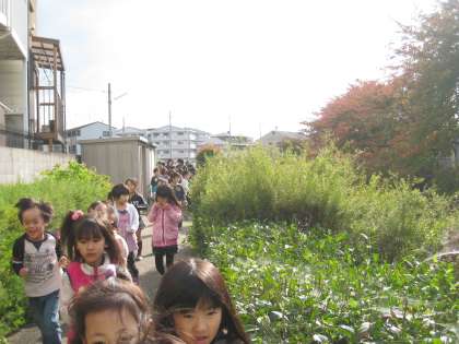 夏から秋になって,葉が赤や黄色などの綺麗な色に移り変わっていることに気付いた子や,夏にはいた虫がどこにいったのかな,冬眠したかもしれないと考えた子もいました。