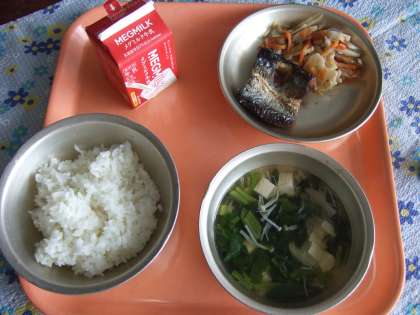 ごはん 牛乳 開干しさんまのからあげ 根菜のごまいため すまし汁