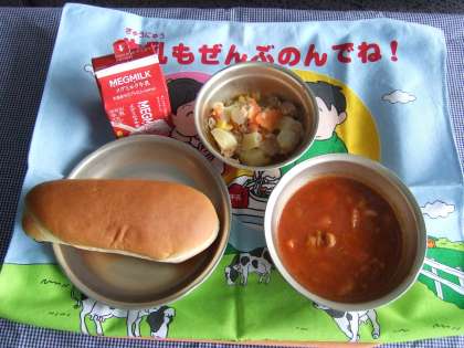 ミルクコッペパン 牛乳 大豆と鶏肉のトマト煮 さっぱりツナポテト