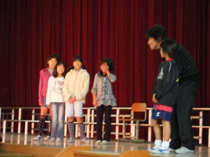 舞台での立ち位置や動きなど細かくチェックしています。また,セリフをただぼう読みするのではなく,抑揚をつけながらいかに感情を伝えられるかにもこだわっています。 明日からは小道具も作り,ますます練習も熱を帯びてくると思います。本番をどうぞ楽しみにしておいてください。