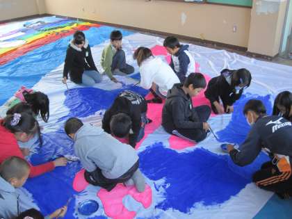 大凧の色塗りを行いました。