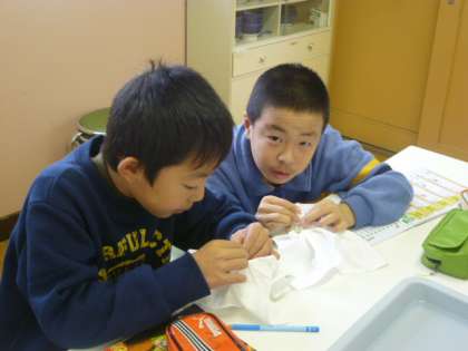 11月20日(火)、待ちに待った、玉ねぎの皮で布を染める活動に取り掛かりました!