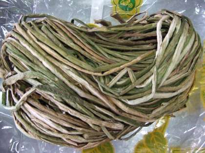 「ずいき」は、里いもの茎です。 給食では、乾燥ずいきを水で戻して湯がき、水でさらしてあく抜きしました。 カルシウム、鉄分、食物繊維を多く含んでいます。