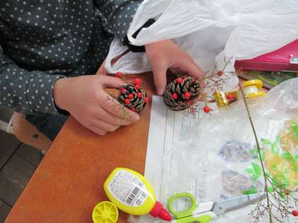 北野天満宮でひろったどんぐりや落ち葉などの「秋」を使って,
