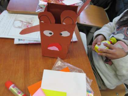 箱にお手紙をつけている子や,折り紙で蛙を作って貼っている子もいました。
