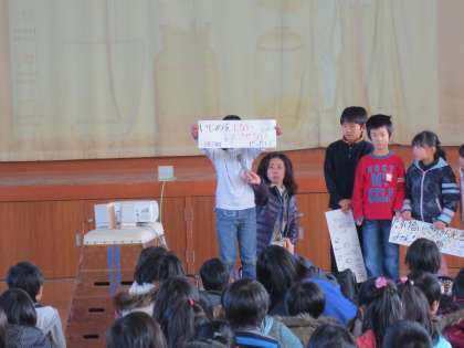 各学級で決めた人権標語について発表しました。